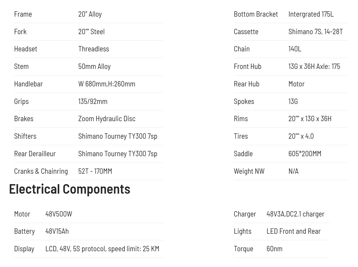 | Tires | 20"" x 4.0 |