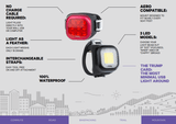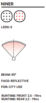 Size doesn't limit greatness, and the Blinder Mini Niner Front Bike Light proves just that. With 9 bright surface-mounted LEDs, the Blinder Mini delivers 20 lumens, and paired with an integrated reflector, the Niner ensures your visibility and safety across various lighting conditions.