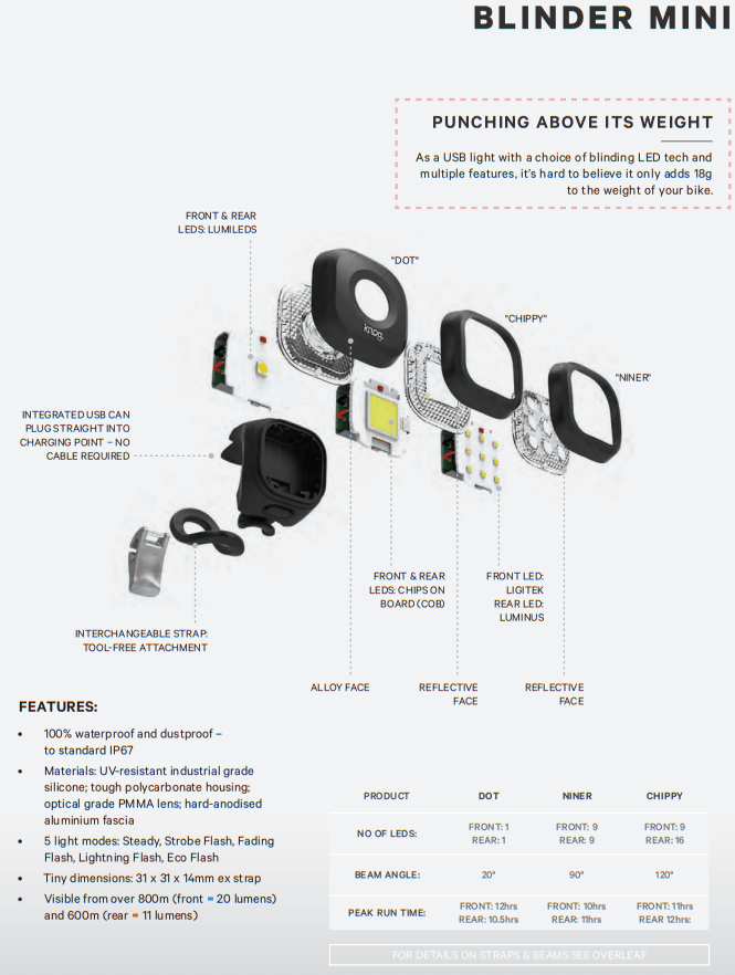 With 5 distinctive modes, the Blinder Chippy Mini stands out as one of Knog's most unique lighting solutions.