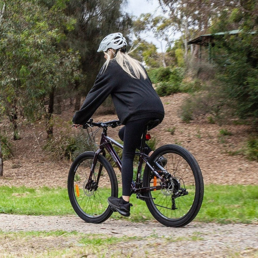 Equipped with a 16-speed Shimano Altus drivetrain, the Swift lets you find the best gear ratio to charge through whatever terrain you're tackling with ease. The reliable front and rear Power disc brakes keep you in control when tearing down the inclines.